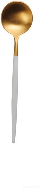 Der ASA Kaffeelöffel in Gold mit weißem Griff ist Teil der Besteck-Serie Goa. Das Besteck verschafft mit seinem goldenem Haupt und dem weißen Griff jeder gedeckten Tafel eine extra Portion Glamour. Es wird selbst zum Deko-Element, sodass es nur noch wenig Dekoration auf dem Tisch bedarf. Das Besteck im schlichten Design liegt durch den dünnen Griff gut in der Hand und passt besonders zu festlichen Anlässen, kann aber auch für die extra Portion Glamour im Alltag zum Einsatz kommen.