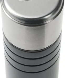 Sie besteht aus hochwertigem 18/8 Edelstahl, fasst 750 ml und lässt sich dank ihres schlanken Formates gut greifen und verstauen. Der doppelwandige Edelstahl-Deckel ist zugleich als Becher verwendbar, ein zweiter Becher aus Kunststoff gehört ebenfalls mit dazu. Ein rutschfestes Pad schützt Behälter und Abstellfläche. Praktisch ist auch der Dreh- und Gießverschluss, der zum Gießen lediglich gedreht werden muss.