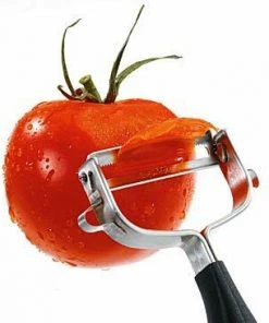 GEFU Tomaten-, Paprika-, Kiwischäler Pomodoro. Die scharfen Spezialklingen aus japanischem Klingenstahl schneiden Tomaten, Paprika und Kiwis perfekt. Der Schäler liegt dabei völlig sicher und anschmiegsam in der Hand.