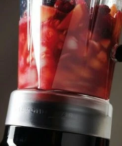 - Großer, einteiliger, BPA-freier Behälter (Kunststoff) mit 1,75 Liter Fassungsvermögen im Rautendesign mit Edelstahlmesser – Zutaten werden für gründliches Mixen optimal zur Klinge geführt