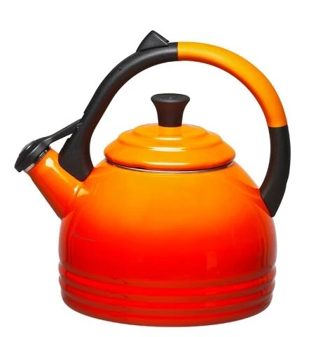 Der ergonomisch geformte Haltegriff mit seiner rutschfesten Oberfläche sogt für eine angenehme Haptik und für sicheren Halt.Das Wasser erhitzt sich dank des extrastarken ferromagnetischen Bodens sehr schnell und das typische Flötengeräusch signalisiert kochendes Wasser. Auf der Oberseite des Haltegriffs befindet sich ein Druckknopf, der den Ausgießer öffnet und so ein kinderleichtes und einhändiges Bedienen gewährleistet.