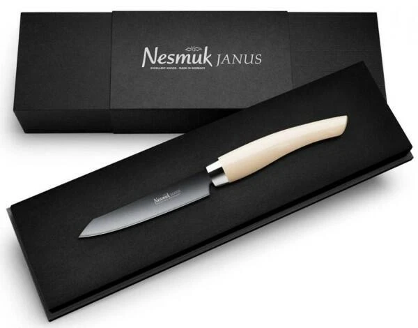 Nesmuk verbindet traditionsreiche Handwerkkunst mit modernster Technologie. Das Unternehmen aus Solingen entwickelt und fertigt Messer in höchstmöglicher Schärfe und setzt dabei auf Stahlsorten, Edel-Materialien und Technologien, die in der Schneidwarenindustrie noch nie zuvor verwendet worden sind – und genau das macht den Unterschied! Alle Messer werden unter dem Anspruch gefertigt, in ihrer Schärfe nicht überboten werden zu können und in jedem Anwendungsbereich den feinstmöglichen Schnitt zu ermöglichen. Die Produkte entstehen in mühevoller, mehrjähriger Detail-Arbeit. Alle Produkte sind mit praktischen und dekorativen Alleinstellungsmerkmalen ausgestattet und genießen den Ruf, jeweils die Besten in ihrer Kategorie zu sein! Sie sind zeitlos, funktional und von höchster Qualität. Es macht keinen Unterschied, ob das Messer links- und rechtshändig geführt wird. Zusätzlich bietet Nesmuk eine Vielzahl an praktischen Zubehör zum Schärfen, Aufbewahren, Pflege sowie Arbeiten wie z.B. Streichriemen, Messerhalter und Schneidbretter an.
