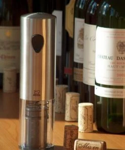 Korkenzieher Elis. Erlaubt das Öffnen einer Weinflasche ohne jede Anstrengung in wenigen Sekunden. Kann bei den verschiedensten Flaschenhälsen und bei allen Korkenmaterialien eingesetzt werden. Die aufladbaren Batterien sind sehr sparsam und somit besonders umweltfreundlich.