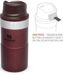 Mit der Slim Line Version des TRIGGER-ACTION TRAVEL MUG führt Stanley eine überarbeitete Version der einhändig bedienbaren Becher ein. Durch das neue, schlankere Design liegt der Becher noch angenehmer in der Hand und die 250ml-Variante passt unter die meisten Kaffee-Automaten. Das Drücken der großen und sehr leichtgängigen Taste zum Aktivieren der Trinköffnung mit einer Hand macht Trinken – on the go – zum Vergnügen. Der rote Trinkbecher aus rostfreiem 18/8-Edelstahl mit Vakuumisolierung besitzt ein Fassungsvermögen von 250 ml und hält Getränke bis zu 3 Stunden heiß oder 4 Stunden gekühlt. Der TRIGGER-ACTION TRAVEL MUG ist komplett spülmaschinenfest, auslaufsicher und passt in gängige PKW-Getränkehalter. BPA-frei.