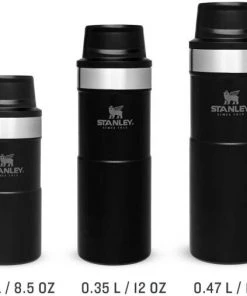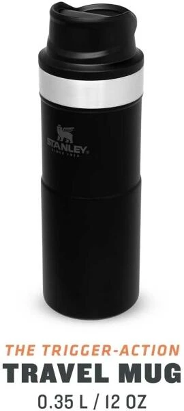 Mit der Slim Line Version des TRIGGER-ACTION TRAVEL MUG führt Stanley eine überarbeitete Version der einhändig bedienbaren Becher ein. Durch das neue, schlankere Design liegt der Becher noch angenehmer in der Hand und passt in alle gängige PKW-Getränkehalter. Das Drücken der großen und sehr leichtgängigen Taste zum Aktivieren der Trinköffnung mit einer Hand macht Trinken – on the go – zum Vergnügen. Der schwarze Trinkbecher aus rostfreiem 18/8-Edelstahl mit Vakuumisolierung besitzt ein Fassungsvermögen von 354 ml und hält Getränke bis zu 5 Stunden heiß oder 6 Stunden gekühlt. Der TRIGGER-ACTION TRAVEL MUG ist komplett spülmaschinenfest und auslaufsicher. BPA-frei.
