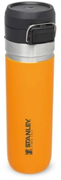 Ob für die Outdoor-Tour, den Sport oder einfach On The Road, die Stanley QUICK-FLIP WATER BOTTLE ist der ideale Begleiter gegen den Durst. Die auslaufsichere Flasche ist mit einem innovativen, zweistufigen Sicherheitsverschluss ausgestattet. Beim Transport wird der Verschluss gegen unbeabsichtigtes Öffnen von einem Edelstahlbügel fixiert. Wird dieser gelöst und der Push-Button Knopf gedrückt, flippt der Deckel federunterstützt auf. Die Trinkflasche aus rostfreiem 18/8-Edelstahl mit Vakuumisolierung besitzt ein Fassungsvermögen von 709 ml und hält Getränke bis zu 8 Stunden heiß oder 12 Stunden gekühlt. Die Flasche passt in gängige PKW-Getränkehalter und ist mit einem beweglichen Bügel zum Anhängen an den Rucksack oder Tragegriff ausgestattet. Alle Teile können in der Spülmaschine gereinigt werden. BPA-frei.