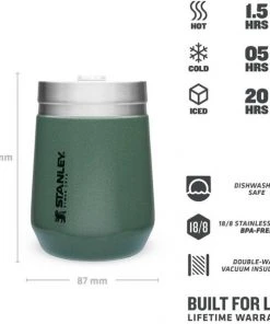 Der Stanley EVERYDAY TUMBLER hält mit seiner doppelwandigen Edelstahl-Vakuumisolierung heiße Getränke bis zu 1,5 Stunden heiß und kalte Getränke bis zu 5 Stunden kalt. Der aus rostfreiem 18/8-Edelstahl hergestellte Trinkbecher besitzt einen durchsichtigen Deckel aus bruchfestem Tritan-Kunststoff, aus welchem sich bequem und einfach trinken lässt. Der in drei Farben erhältliche EVERYDAY TUMBLER ist spülmaschinenfest und alle Teile sind BPA-frei.
