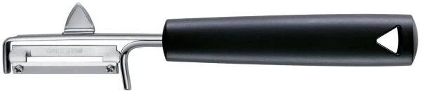 Klassischer Pendelschäler Spirit, wahlweise für Rechts- oder Linkshänder, zum sparsamen Schälen von Gemüse und Obst in mittlerer Schäldicke. Der praktische Zahn hilft dabei, Augen und Schadstellen aus Kartoffeln zu entfernen. Sollte die hochwertige Klinge einmal stumpf werden, ist sie austauschbar. Der Spirit-Griff ist etwas dicker und liegt somit perfekt und ermüdungsfrei in der Hand. Für den Alltagsgebrauch, für Profis und für ambitionierte Hobbyköche entwickelt. Aus hochwertigem Kunststoff, mit Aufhängeöse. Rostfrei und spülmaschinengeeignet. Klinge auswechselbar. Hergestellt in Solingen / Deutschland.